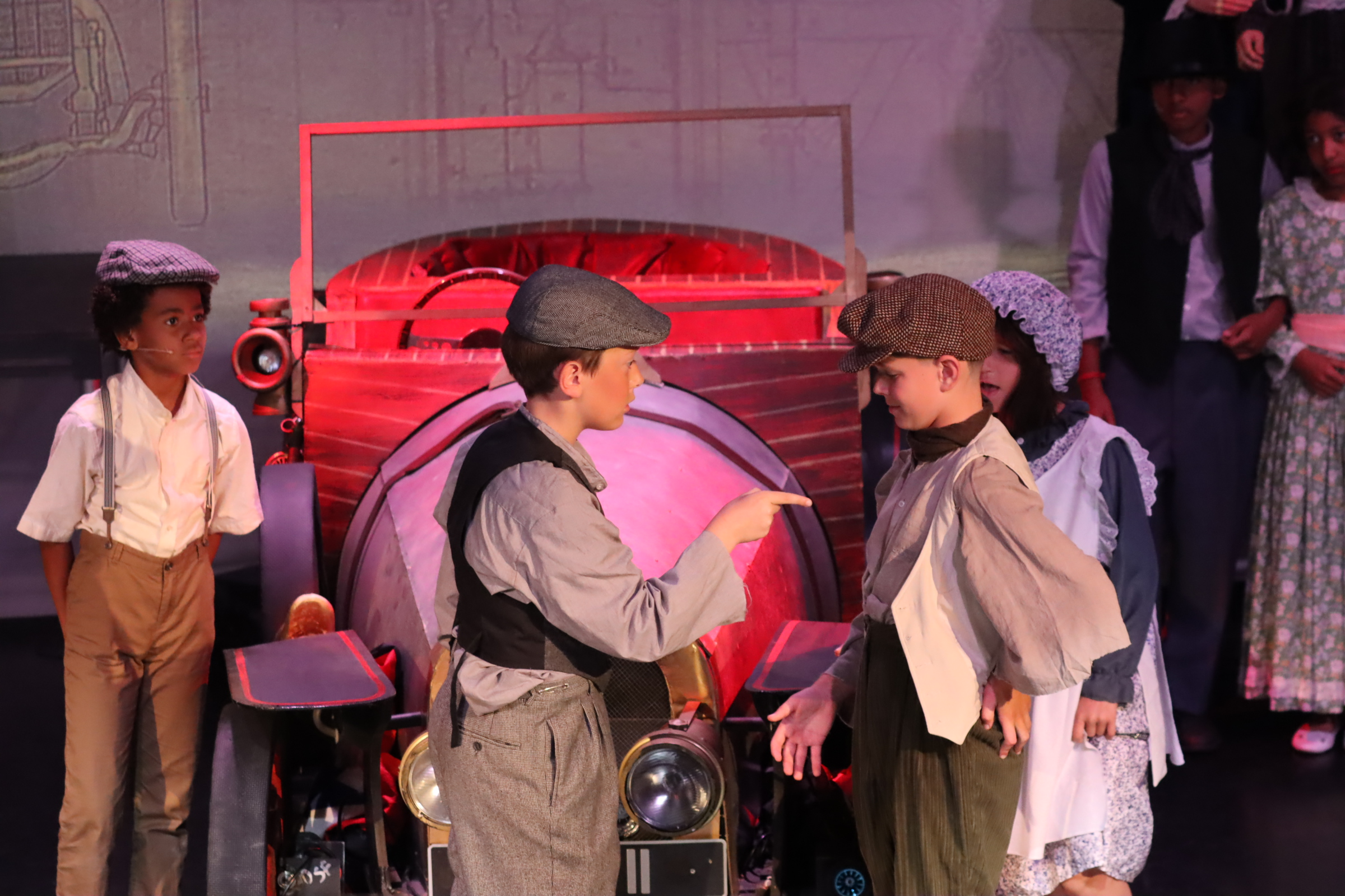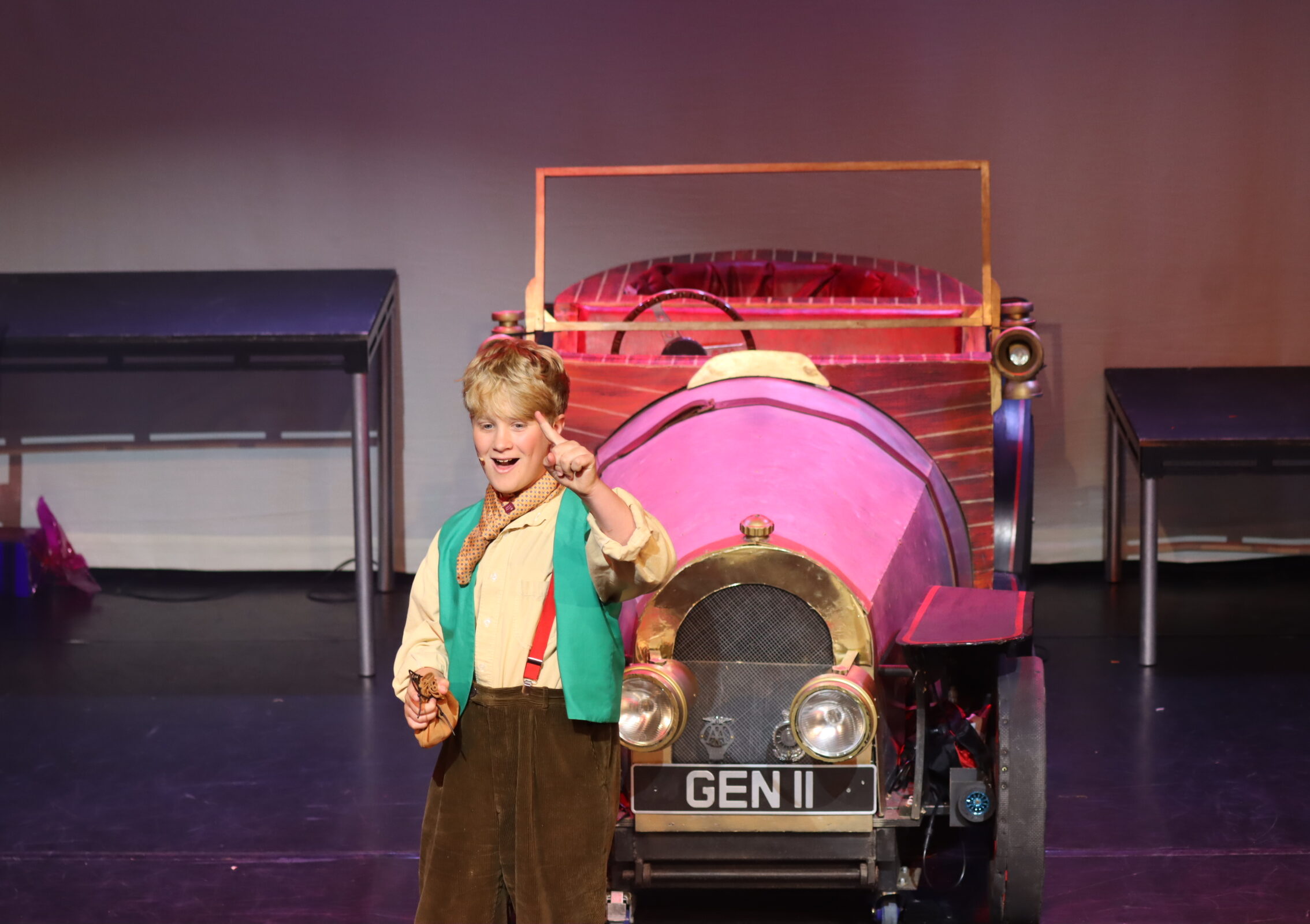 As the rehearsal week kicked off, energy levels soared with the arrival of Chitty herself – the magical, magnificent car that stole the show. It soon became a whirlwind of activity: tech run-throughs, fine-tuning special effects, and making sure every set transition and spotlight was perfectly timed. The set transformed daily, buzzing with crew, costume fittings, and last-minute prop polishing. It was a logistical feat, but the atmosphere crackled with anticipation – and we will never forget the gasps of delight when Chitty first flew on the stage”.
